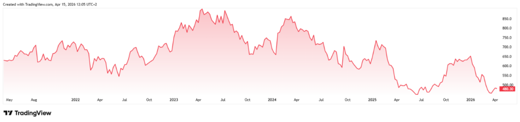 Výkonnost ceny akcií společnosti LVMH za posledních 5 let* Zdroj: TradingView